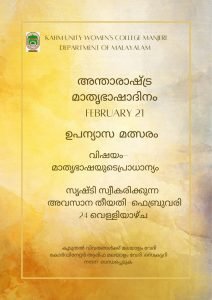 ഫെബ്രുവരി 21 അന്താരാഷ്ട്ര മാതൃഭാഷ ദിനത്തോടനുബന്ധിച്ചു മലയാളം വിഭാഗം ” മാതൃ ഭാഷയുടെ പ്രാധാന്യം” എന്ന വിഷയത്തെ ആസ്പദ മാക്കി ഉപന്യാസ മത്സരം സംഘടിപ്പിക്കുന്നു 24/02/23 വെള്ളിയാഴ്ച ക്കുള്ളിൽ സൃഷ്ടികൾ മലയാളം വിഭാഗത്തിൽ ഏൽപ്പിക്കേണ്ടതാണ്. മികച്ച സൃഷ്ടികൾക്ക് സമ്മാനം ഉണ്ടായിരിക്കുന്നതാണ്
