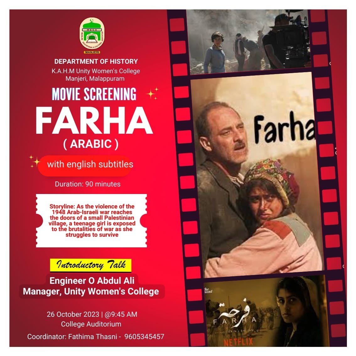 The Department of History, K.A.H.M Unity Women’s College, Manjeri, organised a talk on “The Israel-Hamas Conflict: Understanding the Intricate Web of Past and Present Turmoil” on October 26, 2023. The speaker, Engineer O. Abdul Ali, shed light on the complexities and historical context of the ongoing conflict. The talk was extremely informative and highlighted the various perspectives and factors contributing to the conflict. The moderator, Faizal Tk, Assistant Professor, Department of History, moderated the program. Following the talk, there was a screening of the film “Farha,” which depicted the life of a Palestinian girl during the 1948 Arab-Israel War, providing a glimpse into the human experiences amid the conflict. Hanan, History Association Secretary, delivered heartfelt vote of thanks.