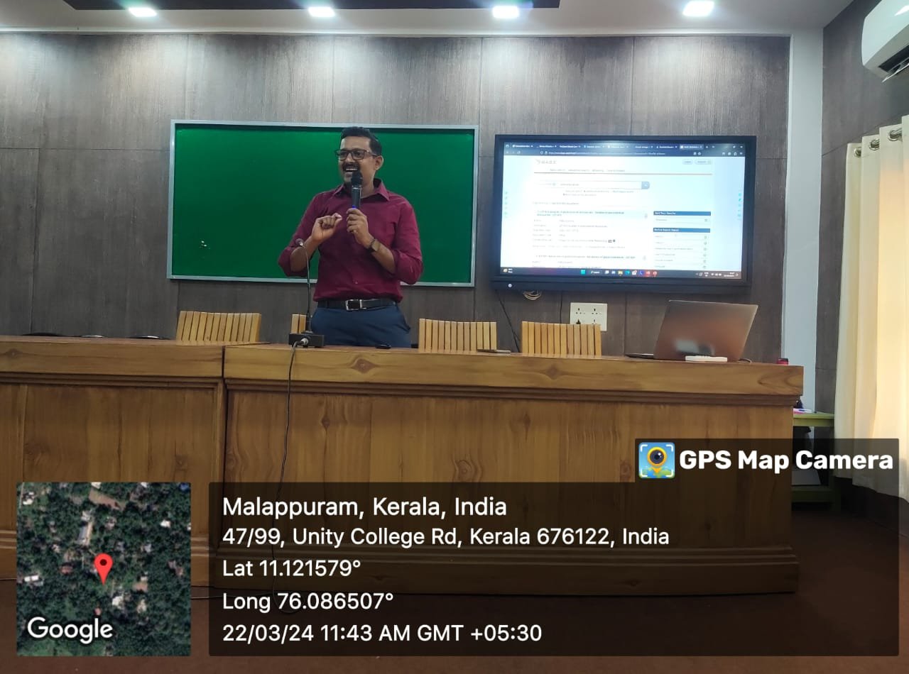 Womens Studies in association with Shihab Thangal Library and Information Centre organized ‘Awareness program on N-LIST and Open Access Resources ‘ on 22th March, 2024. Mr. Prasanth M, Librarian, Department of Folklore Studies, University of Calicut, spearheaded the session.