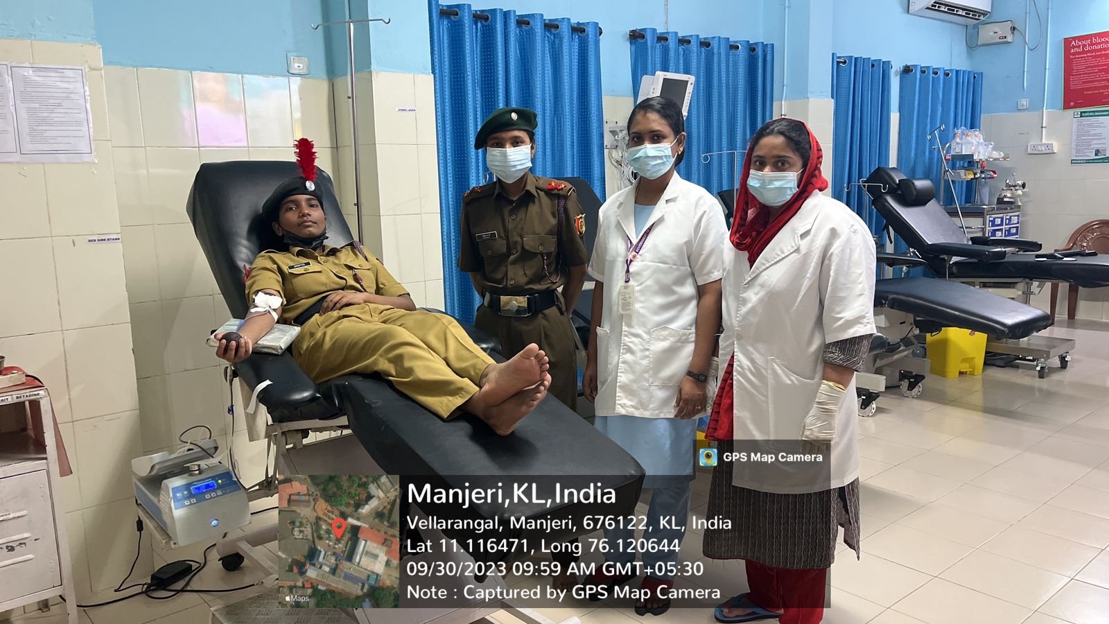As a part of Gandhi Jayanti, Four NCC cadets of KAHM Unity Women’s College, Manjeri – CDT Hasna M (3rd Sem BSc Botony), CDT Hasna Shirin MC (3rd Sem BSc Botony), CDT Thamannah K (1st Sem BCom CA) and CDT Renna Lehan P (1st Sem BCom Cooperation) donated their blood to blood blank of Govt. Medical College Manjeri on 30th September 2023. The blood donation was aimed at encouraging students to step forward and donate blood. The main objectives were to sensitize the need to donate blood to the needy in time, to instill the feeling of helping others to breathe life with their precious donation, to impart to them the value of blood donation, and to be aware of scientific information about the blood group. The blood donation was coordinated by ANO Lt. Loosiya KP.
