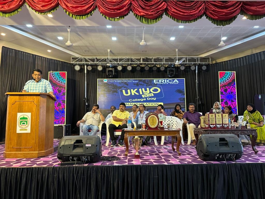 On 6th March, 2023, Erica Students’ Union of Korambayil Ahamed Haji Memorial Unity Women’s College, Manjeri organised it’s annual day programme that was held in the college auditorium. The college day was inaugurated by the Chief Guest, Malappuram Muncipal Chairman Mr. Mujeeb Khaderi. He opined that Unity Women’s college stood as a lighthouse in the firmament of women education and women empowerment. The inaugural speech was followed by the presentation of the annual report by the Principal, Dr. Muhammed Basheer Ummathur. Aswathi P, General Secretary presented the Union Report. Erica Students union Chairperson Ms. Aneesa Minnath Bheevi gave the presidential address. A token of honour was presented to those who would retire from the service this academic year including Mr. Sayyid Basheer Hussain Thangal (Librarian), Mr. Sulaiman T.K. (Office staff) and Ms. Ramla T.P. (Office staff). Staff Advisor, Dr. Annie Ninan, P.T.A. Representative Mr. Mustafa Manjeri too spoke during the occasion. Prizes for various events were also given away during the programme. Ms. Fathima Thasni K. (First Degree Representative) welcomed the gathering and Ms. Fathima Safa C.M. (Fine Arts Secretary) delivered the vote of thanks. The official inaugural session was followed by various cultural programmes organised by the students. The special programmes included the marvellous performances by violinist Mr. Gokul and dancer Mr. Zaviox on the stage