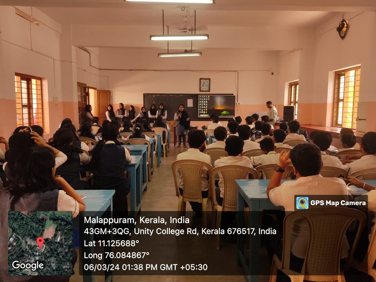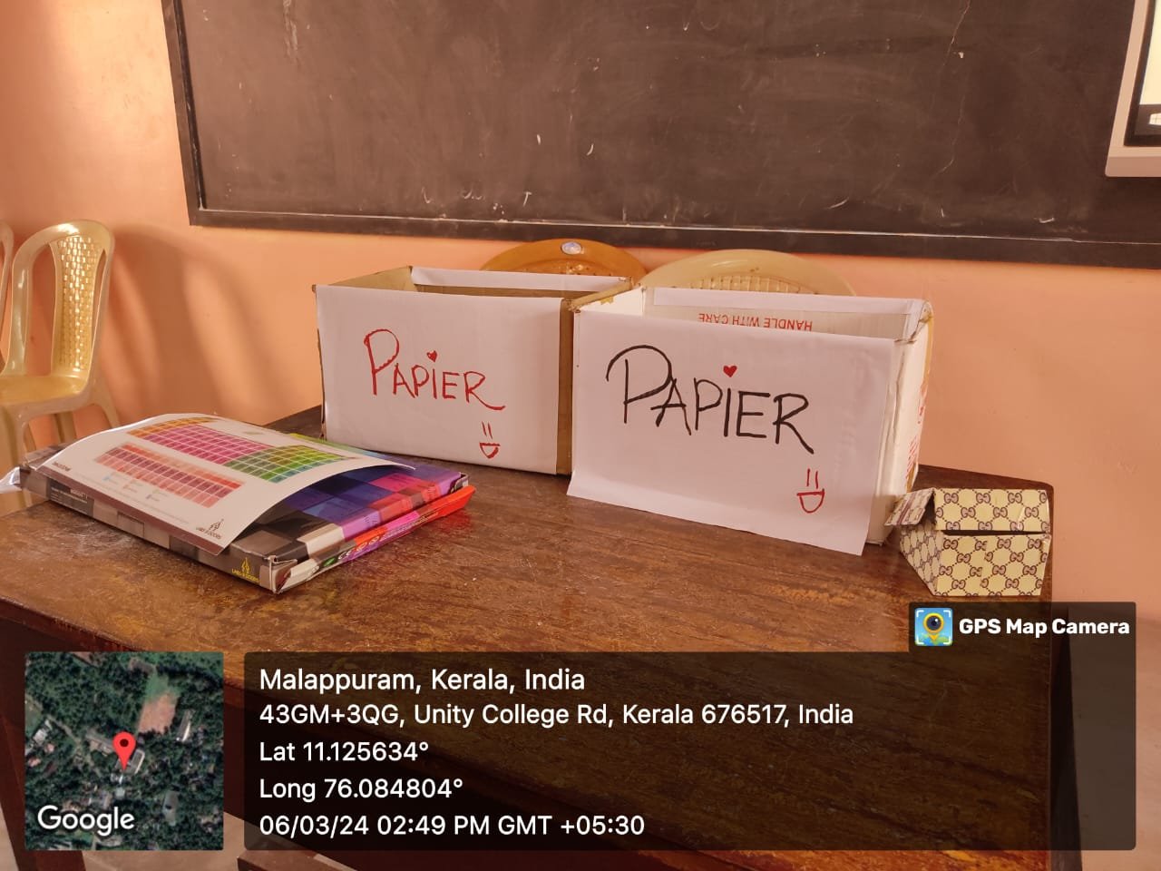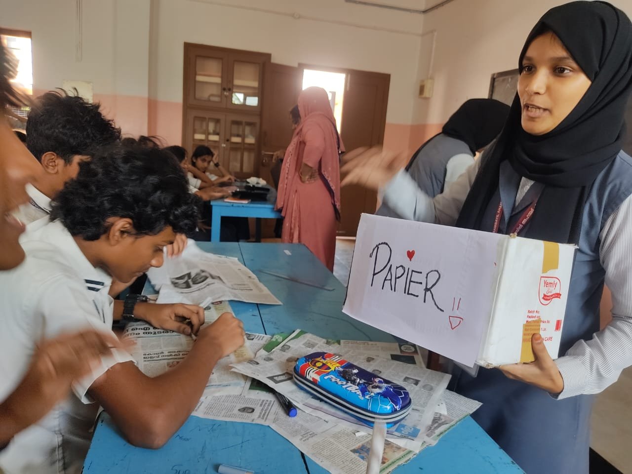 The Department of Chemistry organized a community outreach program at Nazrath School, Manjeri, on the 6th of March 2023, with the aim of extending the department’s best practices to the school level. The primary focus of this initiative was on “papier,” the collection of waste papers into boxes, as part of an environmentally conscious effort. The program commenced with an introductory session led by Dr. Deepa K, wherein the importance of waste paper management and recycling was emphasized. Dr. Deepa elaborated on the detrimental effects of improper waste disposal on the environment and encouraged students to take proactive steps in waste management. Following the introductory session, students were actively engaged in the papier initiative. Under the guidance of Ms. Omniya UMMer, the student coordinator, designated boxes were provided for the collection of waste papers throughout the school premises. This activity aimed to encourage students to develop a habit of segregating waste paper from other types of waste, thus promoting responsible waste management practices. The papier initiative not only focused on waste collection but also aimed to instill a sense of environmental responsibility and sustainability among the students. By actively participating in the collection process, students were empowered to contribute towards a cleaner and greener environment. Ms. Omniya Ummer served as the student coordinator, overseeing the implementation of the program, while Dr. Deepa K acted as the faculty coordinator, providing guidance and support throughout the initiative.