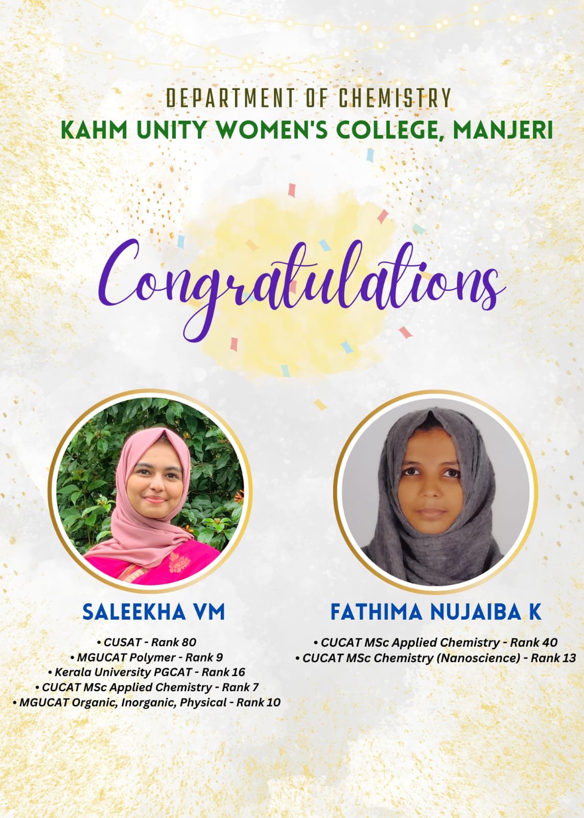 Congratulation-CUSAT Rank Holders