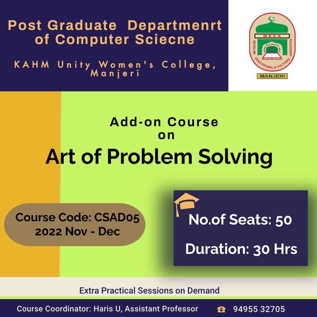 - Solve problems using a variety of mathematical and algorithmic techniques in C