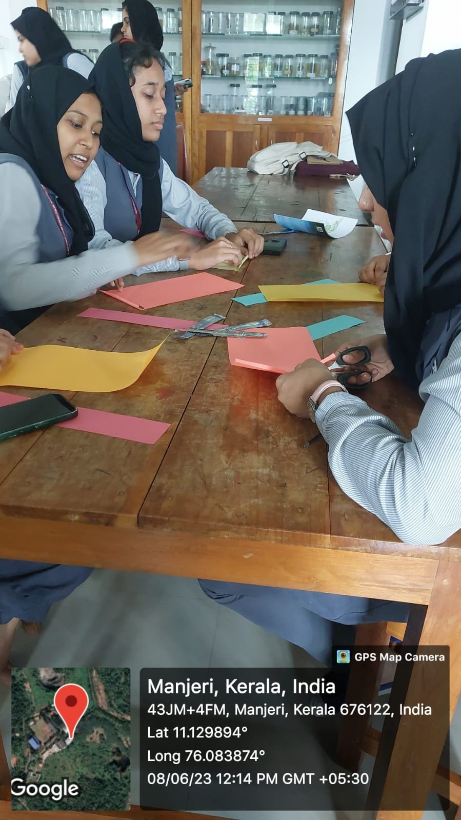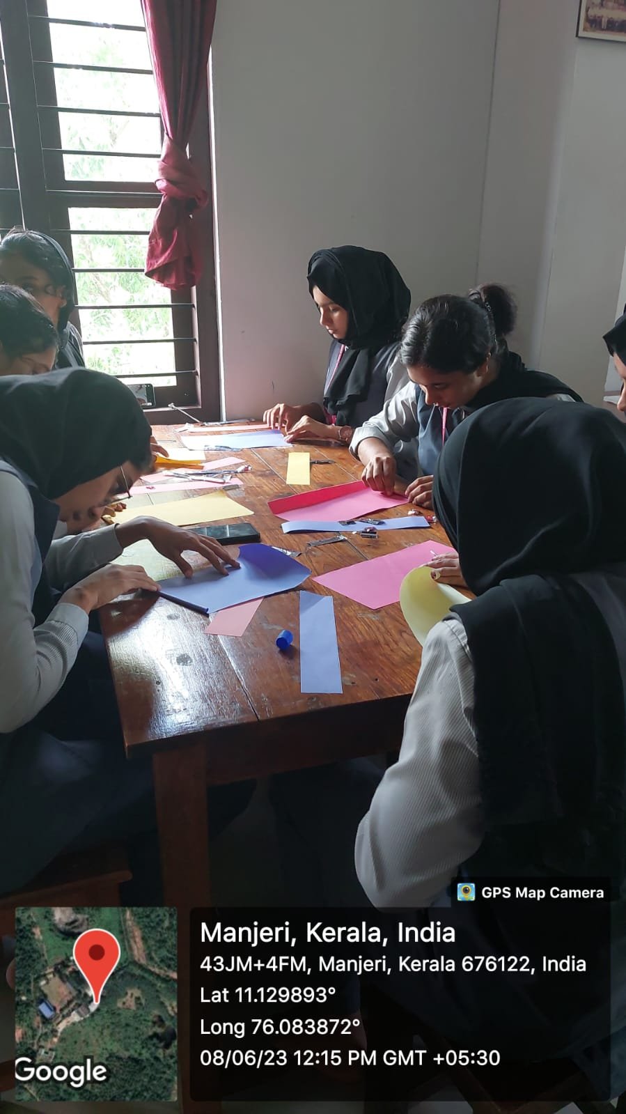 As a part of World Environment Day 2023 celebration, Department of Botany, KAHM Unity Women’s College organized ecofriendly paper seed pen making workshop to all UG and PG students on 8th June 2023. The workshop not only educated the participants about the detrimental effects of plastic pens but also provided them with a practical opportunity to create eco-friendly alternatives and to aware the importance of planting seeds to nurture greenery. Seed pens made by students were distributed to Principal Prof. Muhammad Basheer Ummathur and all teaching and non teaching staffs of the college. Dr. Faseela P., Dr. Deepa P., Dr. Gouthami and Rahila K coordinated the program.