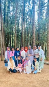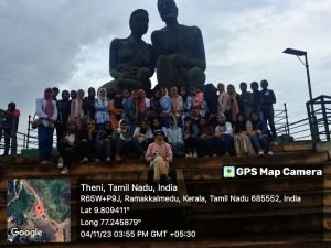 In the third semester of their BA in English, 33 students, accompanied by four teachers, embarked on a learning trip to Idukki district in Kerala on November 4th and 5th, 2023. The primary objective was to gain a firsthand understanding of the cultural, geographical, and historical significance of this tranquil hilly region. The places they visited included Ramakkalmedu, renowned for its breathtaking scenery and windmills; Thangalpara, a sacred site with cultural importance; Kalvari Hills, offering views of Kerala’s largest dam reservoir, the Idukki Arch Dam; Kuravan Kurathi Mala, a location of mythological importance mentioned in the ancient epic of Ramayana; and the Pine Forests, a man-made forest in Vagamon. The trip was enhanced with a hiking adventure at Ramakkalmedu. The students were actively involved in organizing and conducting the trip, providing them with valuable learning experiences.