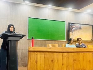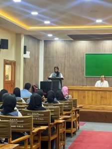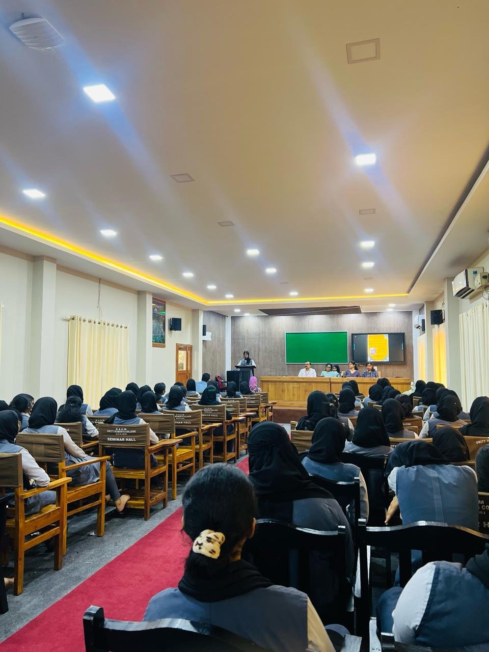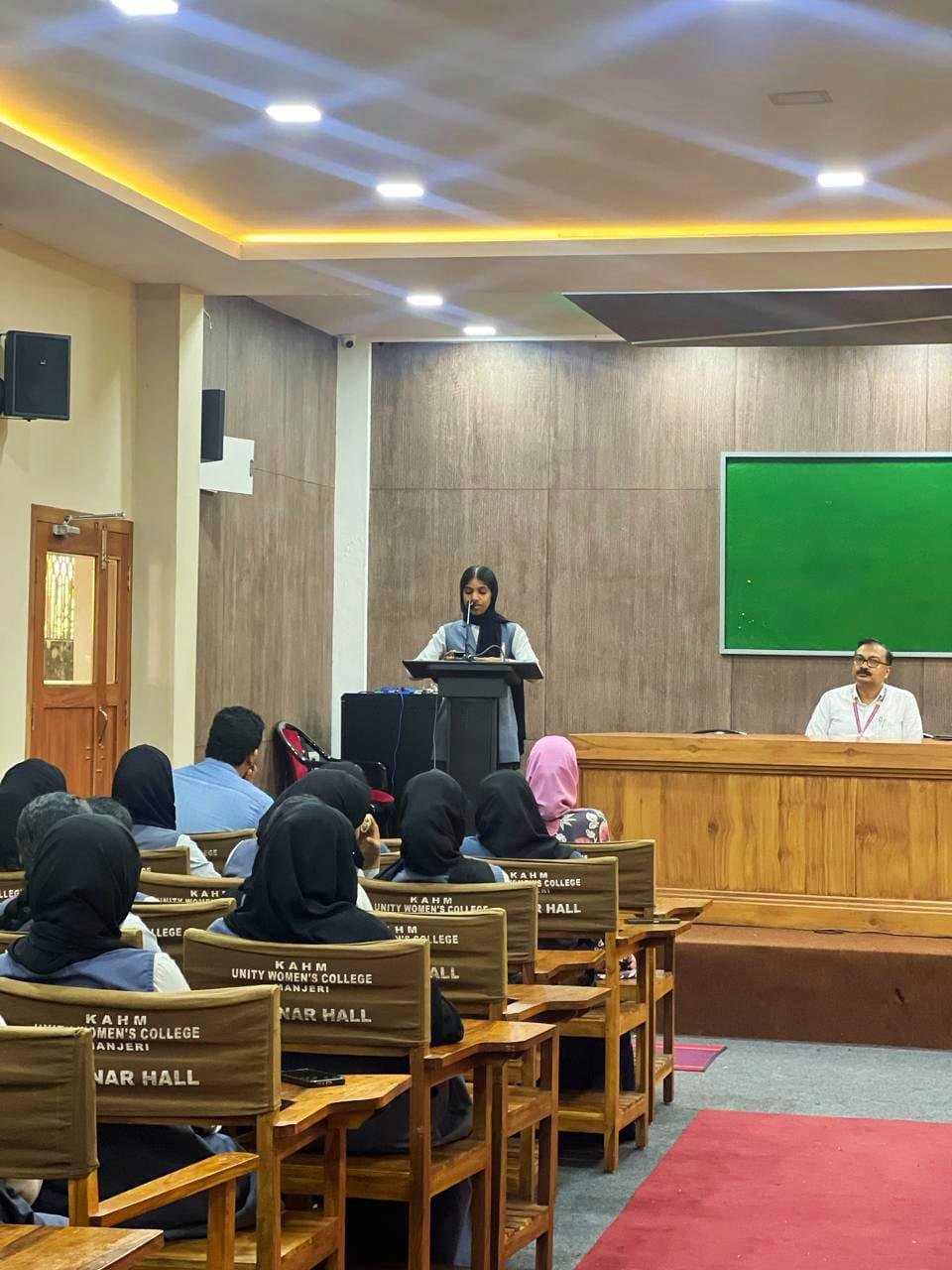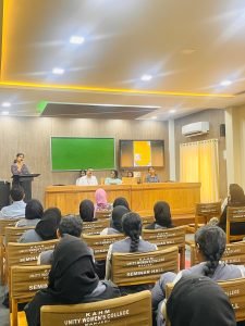 The Film Club at K.A.H.M. Unity Women’s College, Manjeri, was inaugurated by Dr. Shanthi Vijayan, Assistant Professor and Head, Department of English, Providence Women’s College, Calicut on March 12, 2024. The inaugural talk which was in collaboration with the P.G. Department of English was on “Having New Eyes : The Film Voyage”. The inaugural session was presided over by the Principal of the College, Prof. (Dr.) Muhammed Basheer Ummathur. Ms. Sangeeta K., Assistant Professor, Department of English addressed the audience. The inaugural session focussed on the need to revamp strategies within Film Clubs in colleges in aiming for more creative outputs. She also added how cinematography, editing, and camera techniques can reconstruct the hitherto notions on film genres, human interactions and social perspectives. The Welcome note was given by Ms. Muhsina C. K. of Fourth Sem English and Ms. Zanab from Fourth semester M.A. English delivered the vote of thanks. The programme was coordinated by the film club Co-ordinators Dr. Krishna Sunder A., Ms. Sangeeta K. and student coordinator Ms. Muhsina C.K.