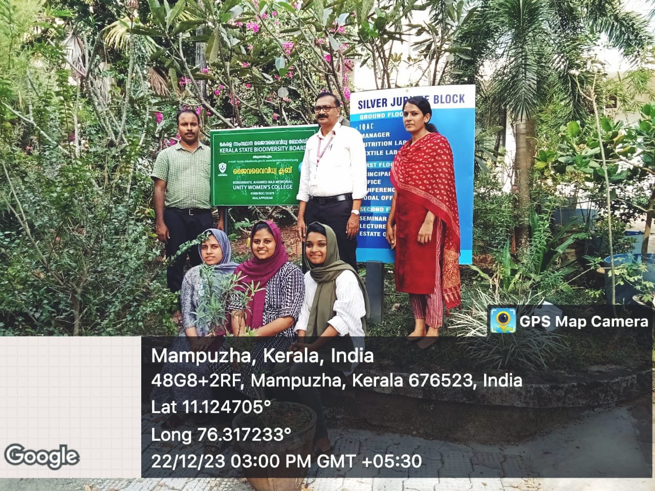 To enforce the activities of the club, Kerala Biodiversity Board, Thiruvananthapuram, Kerala, 695003, sanctioned the fund of 5000/- (File No. A15/714/KSBB/2022) that aimed to fix the Biodiversity Club Board with registration number (KSBB/BDC/10 079) and develop a Biodiversity Spot in the Campus. The club members conducted the corresponding events on 22nd December 2023 in presence of Prof. (Dr.) Muhammed Basheer Ummathur (Principal, KAHM Unity women’s College) and Dr. Usman A. (Head of the Department of Botany, KAHM Unity women’s College) and the events coordinated by Dr. Deepa P. and Ms. Surya E.V. (Coordinator and Joint Coordinator of Biodiversity Club) of Botany Department.