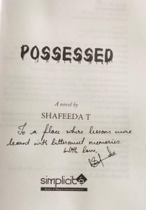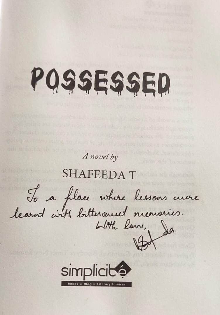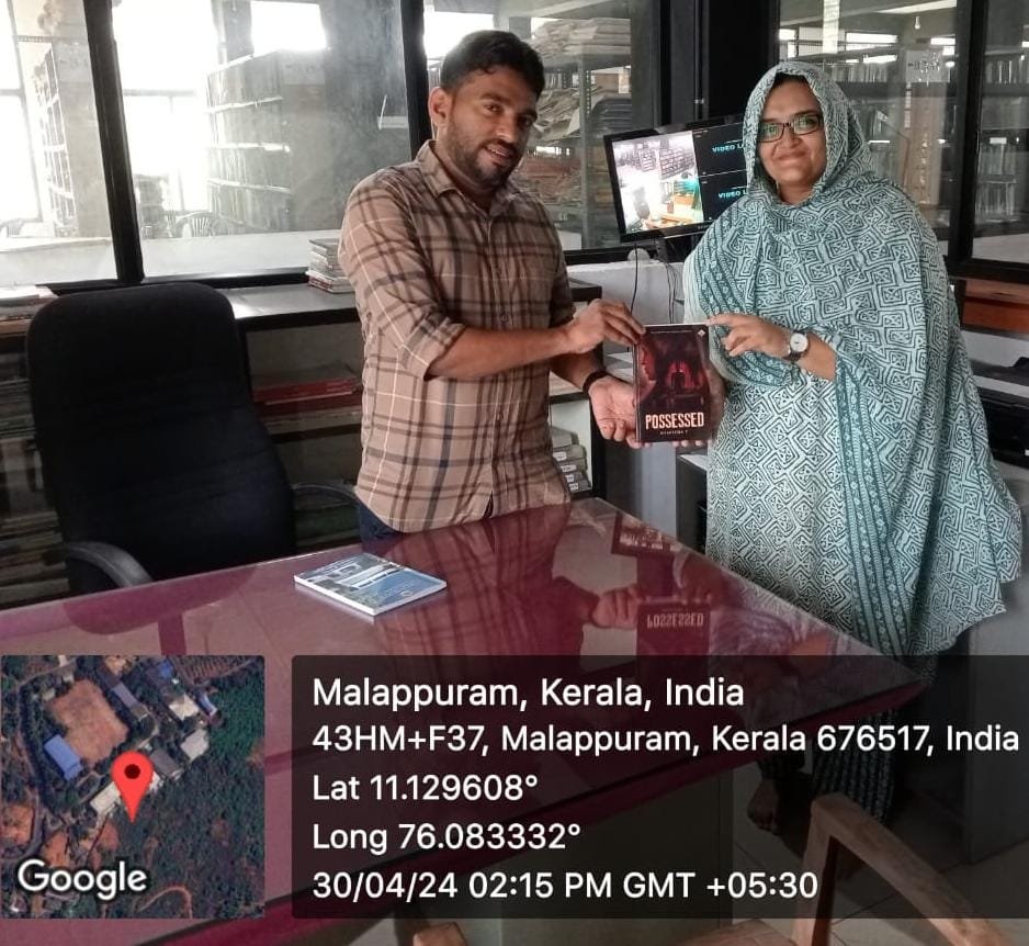 Shafeeda T , an alumna of Korambayil Ahamed Haji Memorial Unity Women’s College, has gifted her debut book titled ‘ POSSESSED ‘ to the Shihab Thangal Library. The work , marking her entrance into the literary world, holds promise as a compelling addition to the library’s collection.