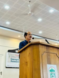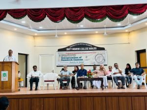 The Pro-vice Chancellor of Calicut University, Prof. (Dr.) M. Nasser spoke about how Research can be translated to the society to provide a better output during the Inaugural function of the Research Centres ( Dept. of English and Dept. of Chemistry) at Korambayil Ahamed Haji Memorial Unity Women’s College, Manjeri. The inaugural function was held at the College Auditorium on 21st September, 2023. He also added that persistence is a key factor which pays when it comes to research work. He also mentioned how collaborative research can bring in more excellence. The welcome address was delivered by Dr. Jyoti P., Head of the Department of Chemistry. Principal, Prof (Dr.) Muhammed Basheer Ummathur gave the Presidential address. This was followed by the special address by the former Principal Prof. P. N. Abdurahiman. Manager of the college, Jb. O. Abdul Ali and Former heads of the departments Dr. P.K. Babu ( Principal, Al Shifa College, Perinthalmanna) and Dr. A. I. Yahya (Associate Professor and Head, Department of Chemistry, University of Calicut) spoke on the occasion. Mr. Rahib B. (Staff Secretary) and Mr. Adham Thaneri (Secretary, Non-teaching Staff) delivered felicitation. Ms. Salha Mariyam (P.G. Representative) too felicitated the gathering. Dr. Shahina Mol A.K. (Head of the Department of English and IQAC Coordinator) delivered the vote of thanks. The inaugural function was followed by an invited lecture on “Exploring the Research Experience”. Dr. P. K. Babu (Principal, Al Shifa College, Perinthalmanna) served as the Resource person and the session was conducted for the post graduate students of the college.