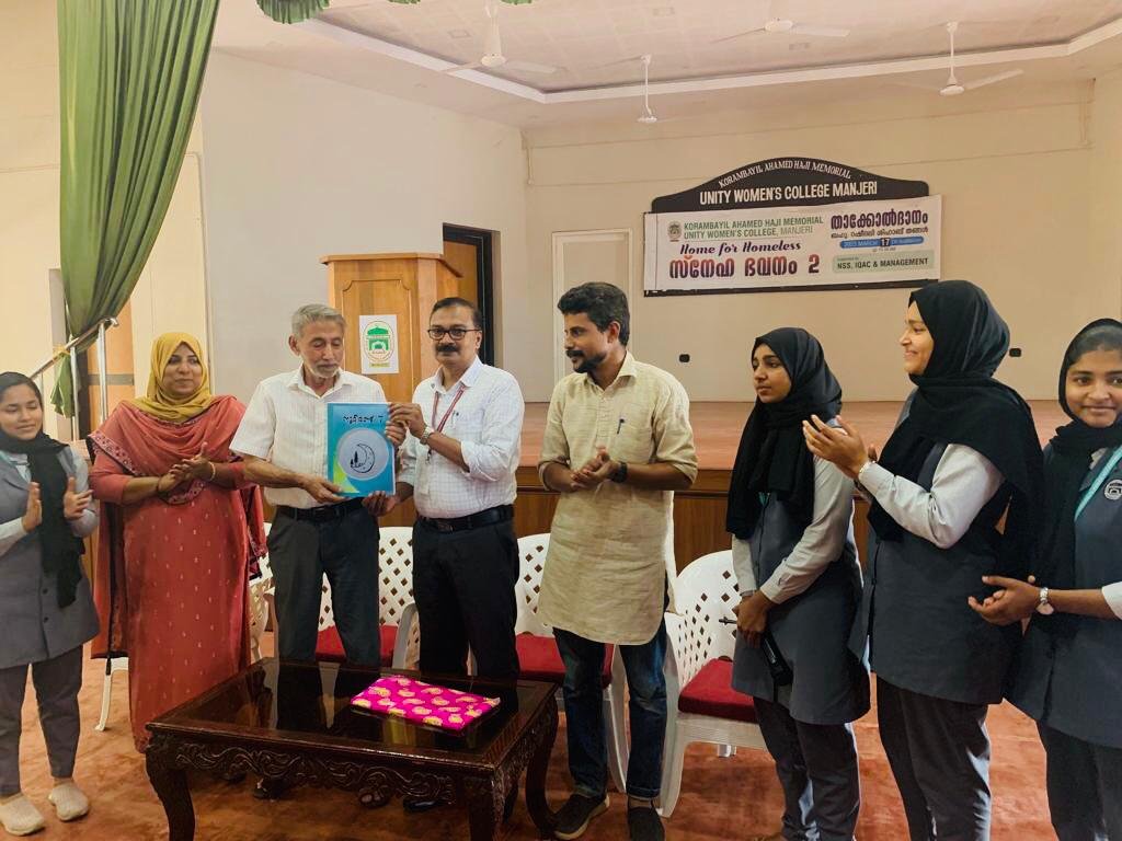 NSS സപ്തദിന ക്യാമ്പിന്റെ ഭാഗമായി പുറത്തിറക്കിയ കയ്യെഴുത്തു മാഗസിൻ പ്രിൻസിപ്പാൾ മാനേജർക്കു നൽകി പ്രകാശനം നിർവഹിക്കുന്നു.