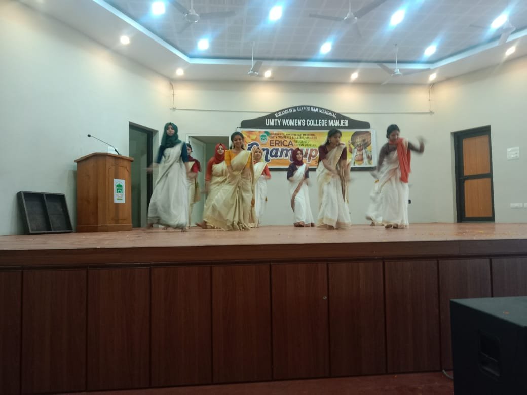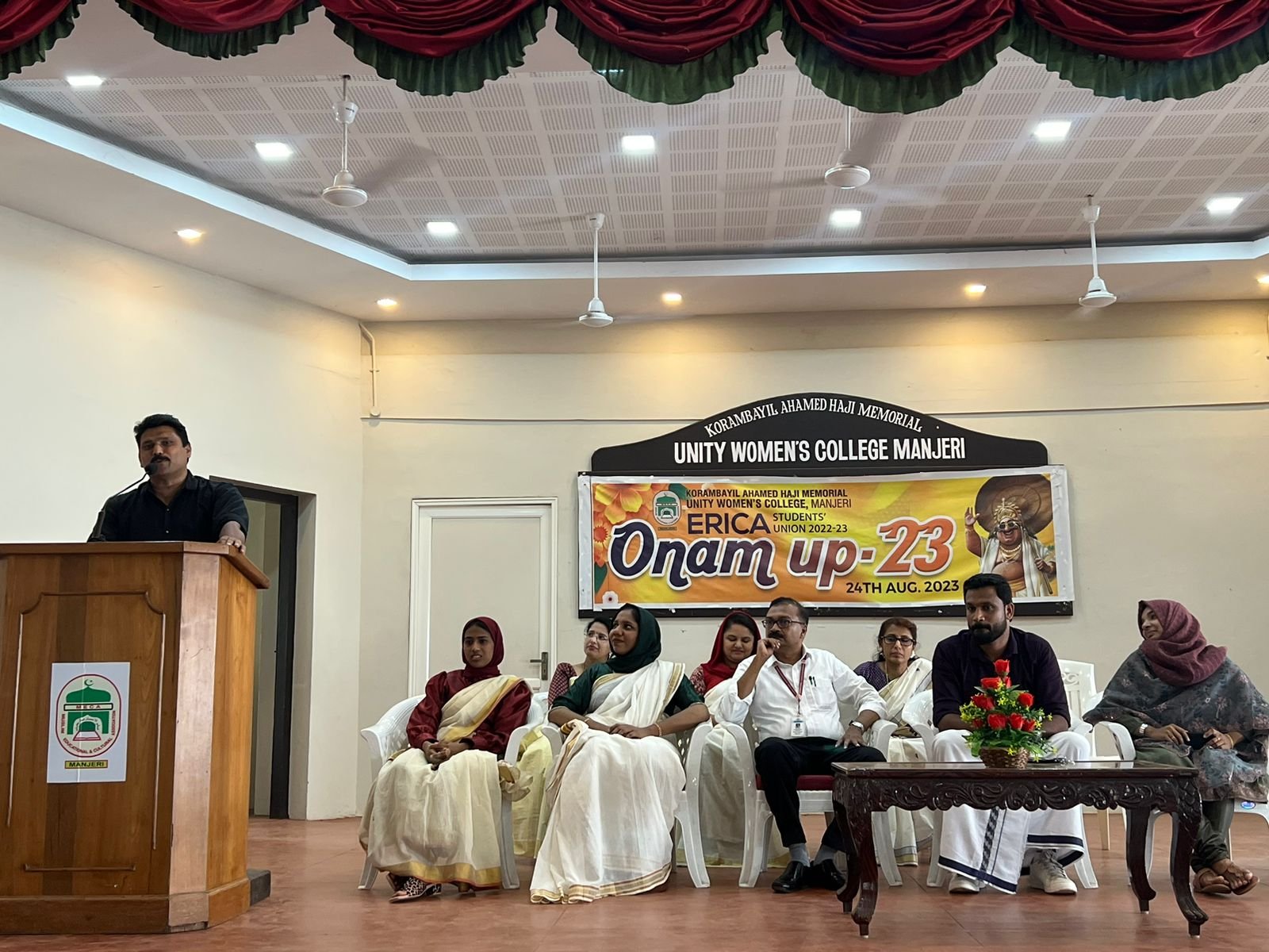 The KAHM Unity Women’s College, Manjeri celebrated the Onam on August 24, 2023. The event was coordinated by Erica Students’ Union. Ms. Aslaha Konoth (UUC) extended a warm welcome to the attendees. Ms. Nafla T P, the vice-chairperson of the college union, presided over the event. The colourful ceremony was inaugurated by Principal Dr. Muhammad Basheer Ummatur. In the program, Ms. Aswathi M P, the faculty of English department, gave the Onam message which was followed by a felicitation by Dr. A.K Shahina Mol (IQAC), Mr. V. M. Musthafa (PTA vice-president) and Mr. Sidhique P (Fine Arts Director). Teams from various departments participated in competitions such as Tiruvathirakali, Pookalam competition, musical ball and Tug of War. The Chemistry team won the tug-of-war competition in which five departments participated. The Mathematics team became the runners-up in ‘Pookalam’ competition, the Family and Community Science, Psychology departments won two, and three positions, respectively. Expressing gratitude, Ms. Fahmitha K. V (Second year representative) concluded the event with a vote of thanks.