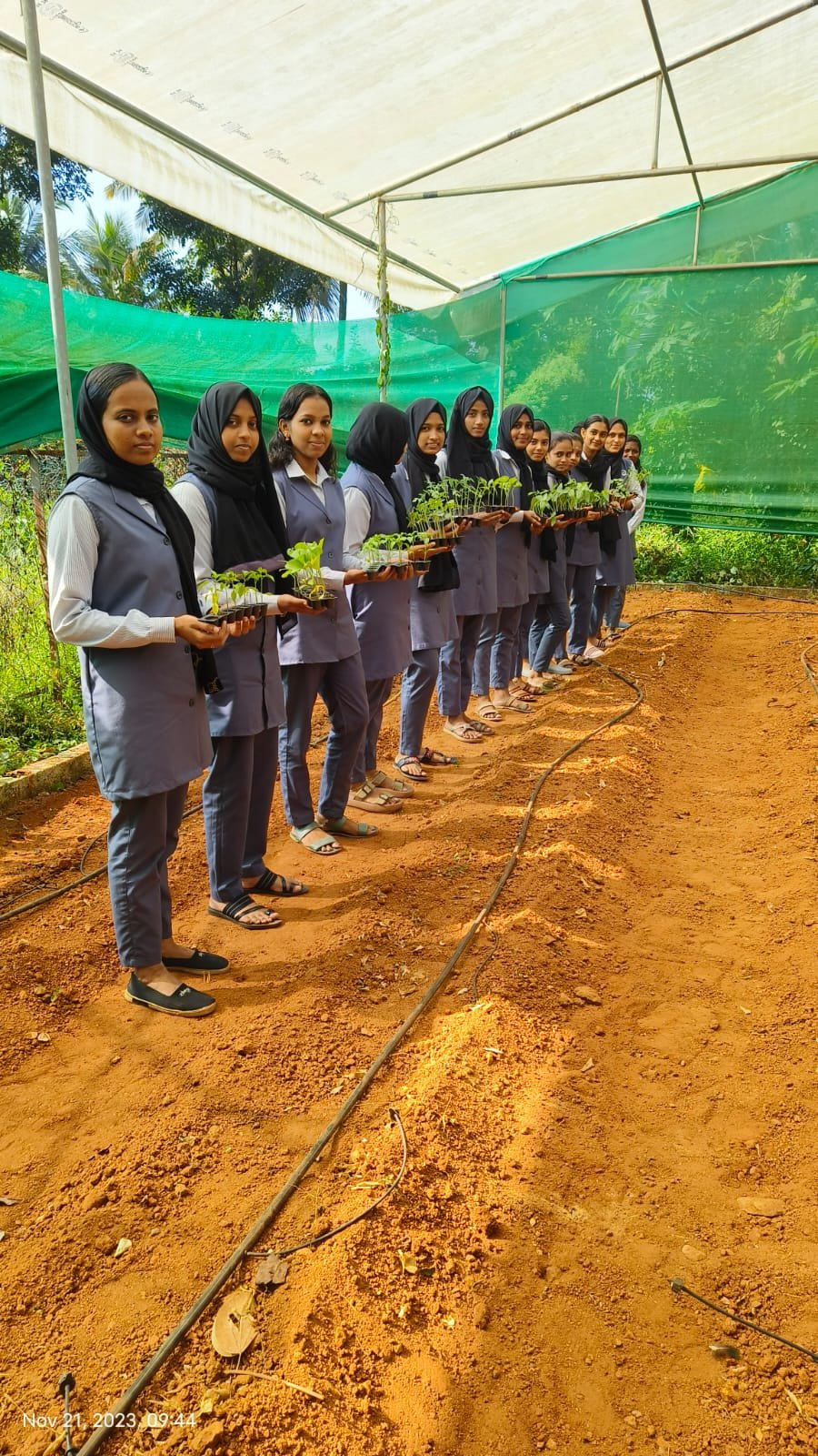 On 21st November 2023, PG Department of Botany restarted organic farming (Organic Univegetable Garden) with an objective of giving students first-hand experience in nature and gardening by providing a phase of manual training on usage of tools and implements in the gardening processes together with the preparation of cultivating soil. Dr. Usman A. (Head of the Department) inaugurated the experiential learning event by planting the Tomato seedling in the organic cultivating area of Polyhouse that was purchased from Daliya Nursery and Garden, Anakkayam, Manjeri. As per the advice provided by the gardener, First Semester B.Sc. Botany students helped to prepare the cultivating area and planted the vegetable seedlings viz. Lycopersicum esculentum, Capsicum annuum, Abelmoschus esculentus and Vigna unguiculata properly in the drip irrigated site. On the completion of the programme, the students developed critical understanding on various aspects of agronomy and realized the role of organic farming to maintain environment health by reducing the level of pollution.