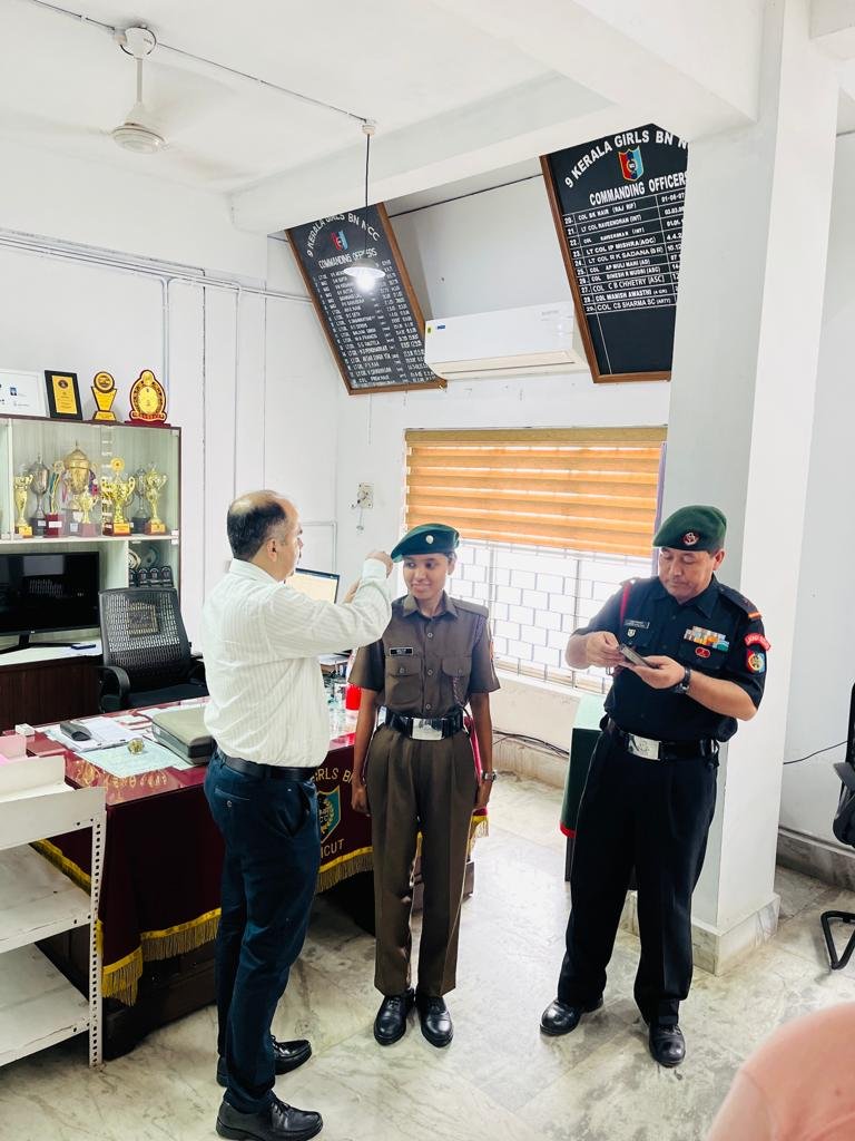 Pipping Ceremony done by Col. CS Sharma SC, The Commanding Officer in presence of Sub/Maj Narboo Gailson of 9 (K) Girls Battalion NCC, Calicut. Ms. Loosiya. KP Commissioned as Lieutenant in NCC on 13 June 2023