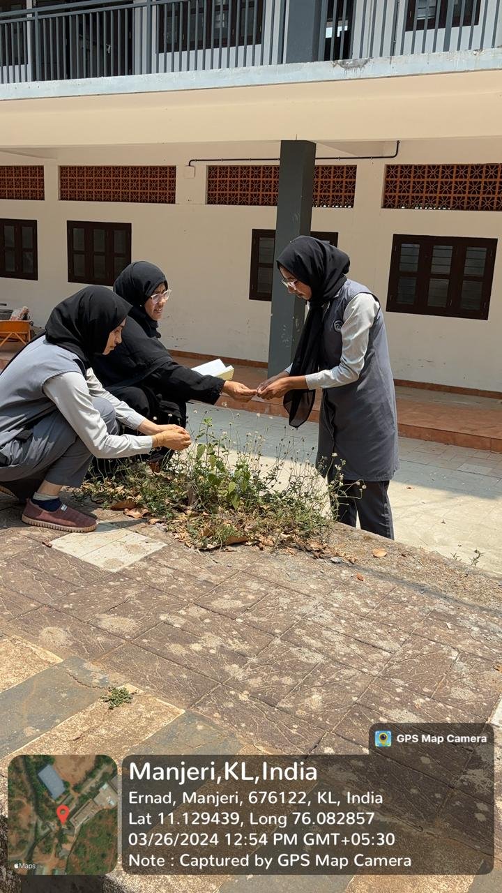 The Biodiversity and Botany Club in association with IQAC organized a comprehensive ‘Plant Identification and Floristic Survey’ within the campus premises on 25, 26 & 27 March 2024. The event aimed to enhance awareness about college flora, promote biodiversity conservation, and provide hands-on experience in plant identification to the students using ‘Flora of Presidency of Madras’. The survey yielded a comprehensive inventory of plant species present within the campus by students of Fourth Semester M.Sc. Botany, contributing valuable data to the botanical records. Participants gained practical skills in plant identification, fostering a deeper connection with nature and an increased understanding of ecological principles. By combining field surveys with educational practices, the event not only contributed to scientific knowledge but also inspired a sense of stewardship towards the campus environment. The event coordinated by Deepa P., Surya E. V. and Fayiza T. of Botany Department that played a crucial role in fostering a culture of conservation and promoting sustainable practices for the benefit of present and future generations.