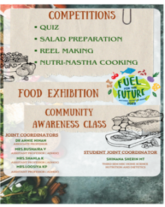 Rashtriya Poshan Maah or National Nutrition Month is a month-long campaign led by the Government of India every September. In connection with this, the PG department of Home Science organized ‘Nutrivora’ 2023. A series of programmes such as Food exhibition, community awareness class, nutria-Nastha cooking competition, salad preparation, reel making and quiz were conducted under Nutrivora to advocate for improved nutrition, especially among children, women and adolescent girls.