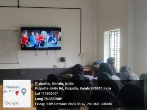 On 13 October 2023, screening of the movie “Pazhassiraja” took place in Room no. A 108 at 1:30 pm. This screening was specifically organized for the fifth semester BA history students, as the story of Pazhassiraja who fought against the British in Malabar, formed a part of their Kerala History syllabus. The movie provided an immersive and visual representation of the historical events and struggles faced by Pazhassiraja. It allowed the students to gain a deeper understanding of the context and significance of his resistance against the British rule.