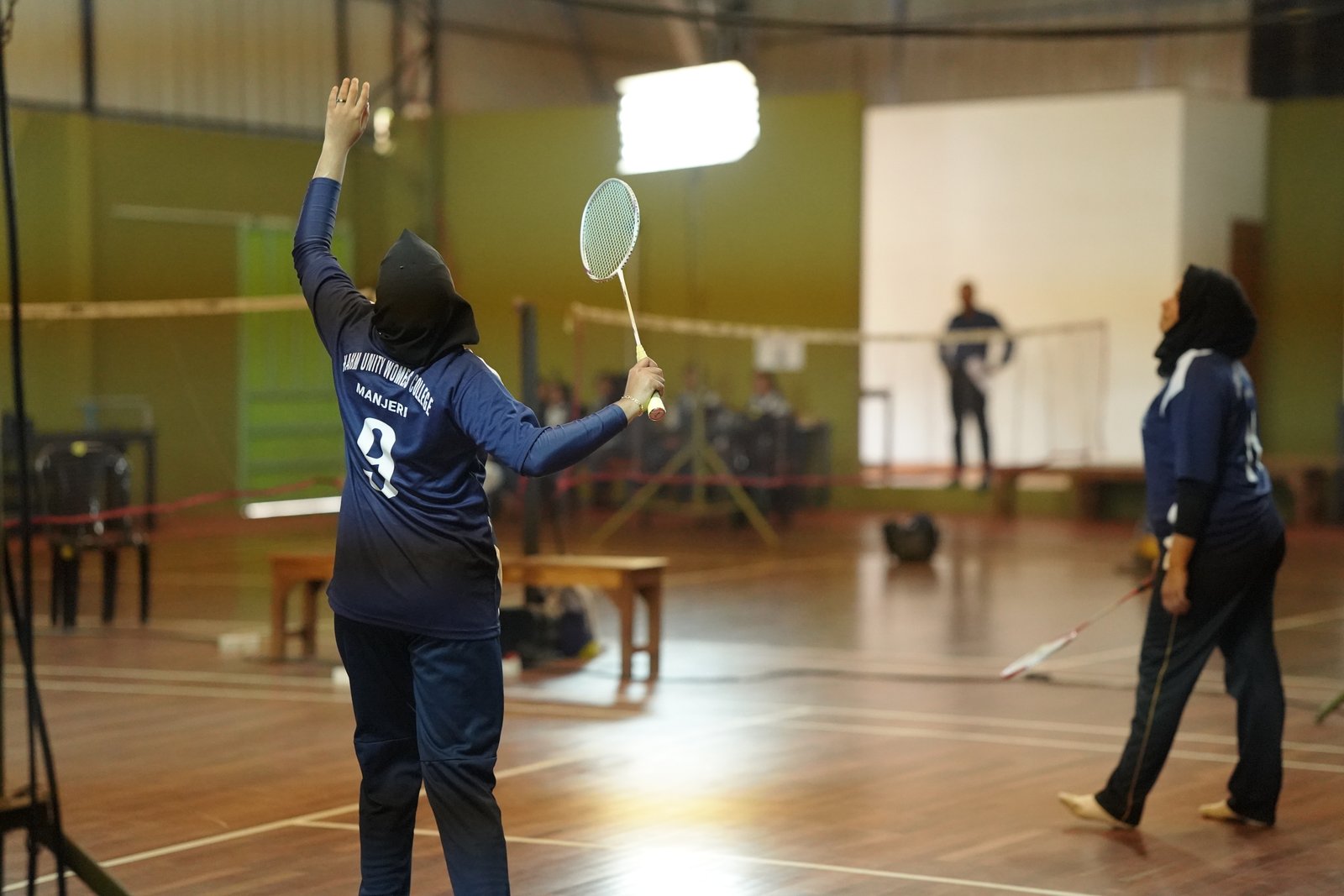The college has a new identity of owning an indoor stadium of 855m2 constructed with a grant of Rs40 lakhs from UGC and Rs 35 lakhs from the management. The ambiance is pleasant with wooden track measuring 21m x 18m and with ten turbo ventilators. The provision of the indoor stadium includes three Badminton Courts, three Table Tennis Court, Taekwondo Mat etc.