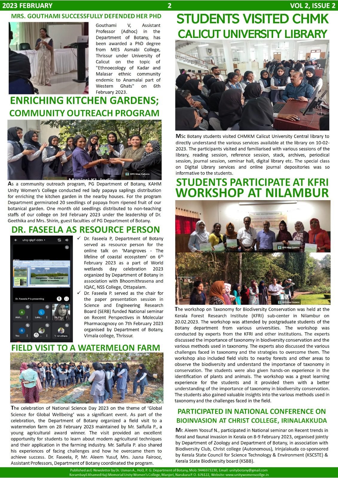 The Chlorophile, February issue (Official monthly newsletter of Department of Botany.Vol 2: Issue 2